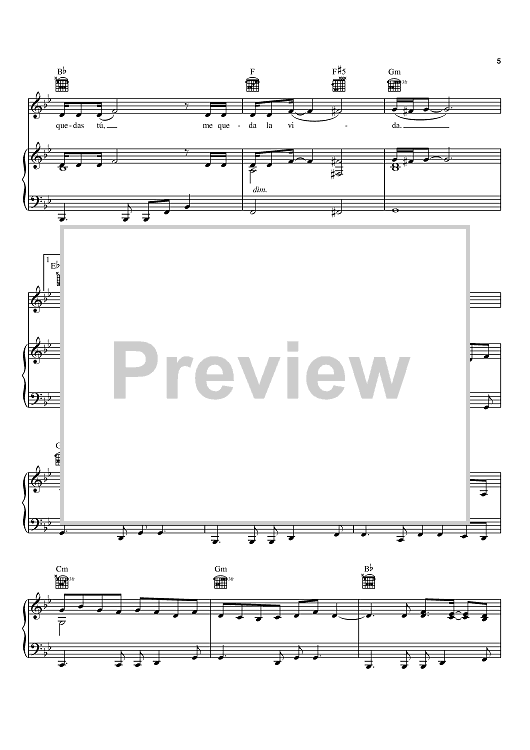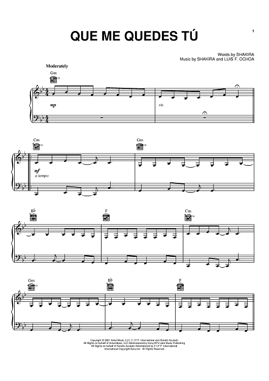 Digital Sheet Music for Que Me Quedes Tú by Shakira, Luis Fernando Ochoa scored for Piano/Vocal/Chords; id:387209