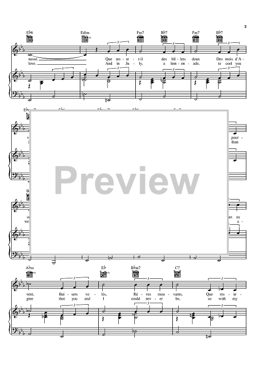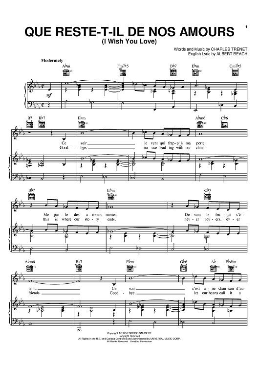 Digital Sheet Music for Que Reste-T-Il De Nos Amours (I Wish You Love) by Charles Trenet, Albert Beach scored for Piano/Vocal/Chords; id:395258