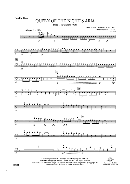 Digital Sheet Music for Queen of the Night's Aria (from The Magic Flute) - Double Bass by Wolfgang Amadeus Mozart, Bob Lipton scored for String Orchestra; id:436976