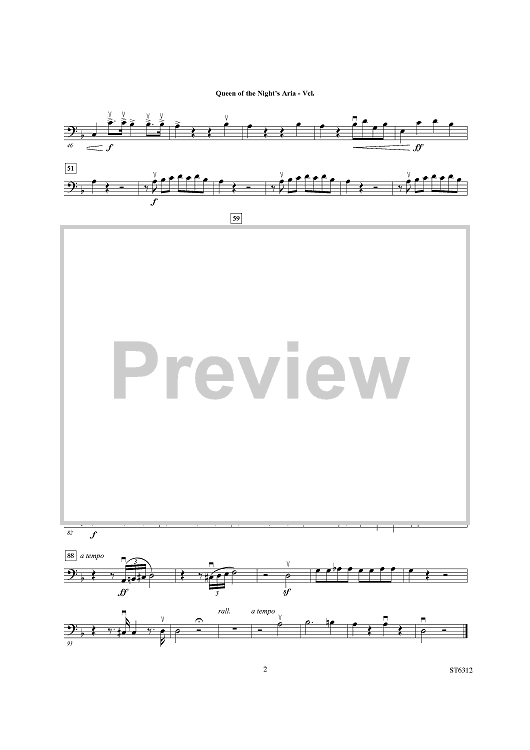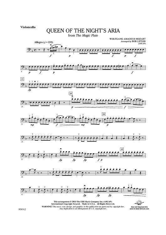 Digital Sheet Music for Queen of the Night's Aria (from The Magic Flute) - Violoncello by Wolfgang Amadeus Mozart, Bob Lipton scored for String Orchestra; id:436975