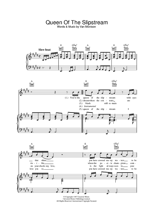 Digital Sheet Music for Queen Of The Slipstream by Van Morrison scored for Piano/Vocal/Chords; id:387448