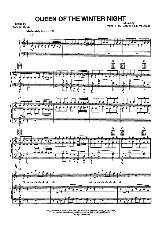 Digital Sheet Music for Queen Of The Winter Night by Wolfgang Amadeus Mozart, Trans-Siberian Orchestra, Paul O'Neill scored for Piano/Vocal/Chords; id:465672