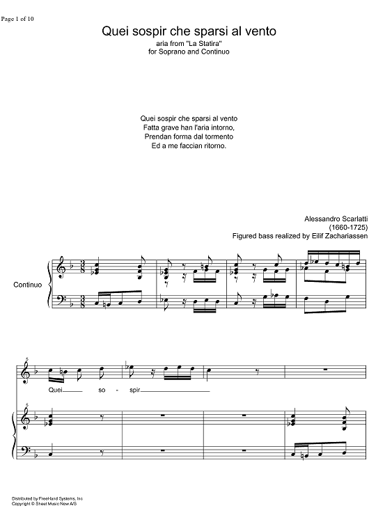 Digital Sheet Music for Quei sospir - Score by Alessandro Scarlatti, Eilif Zachariassen scored for Soprano/Continuo; id:323652