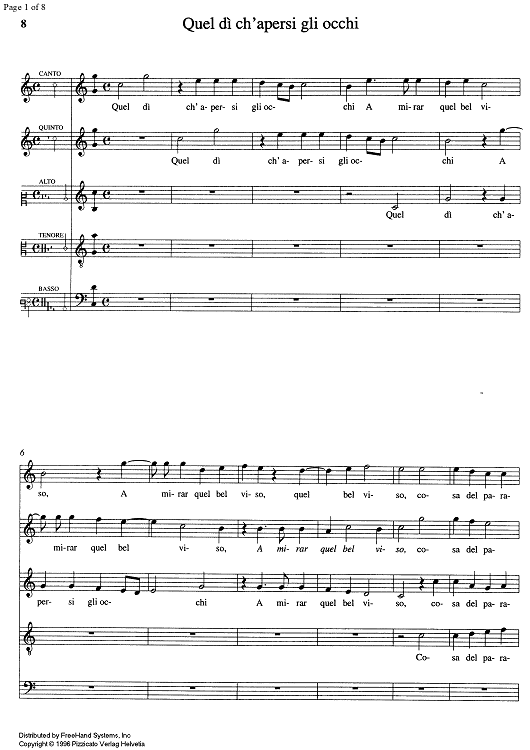 "Quel dì ch'apersi gli occhi" Sheet Music by Alessandro Orologio