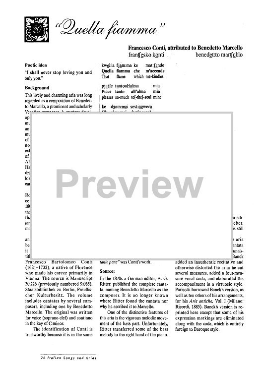 "Quella Fiamma (Flames within me)" Sheet Music by Benedetto Marcello