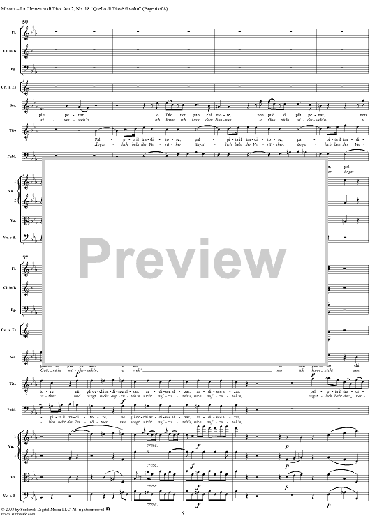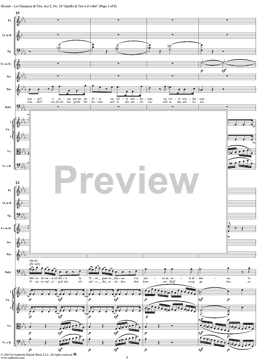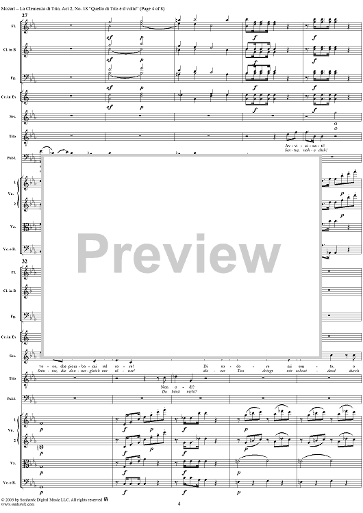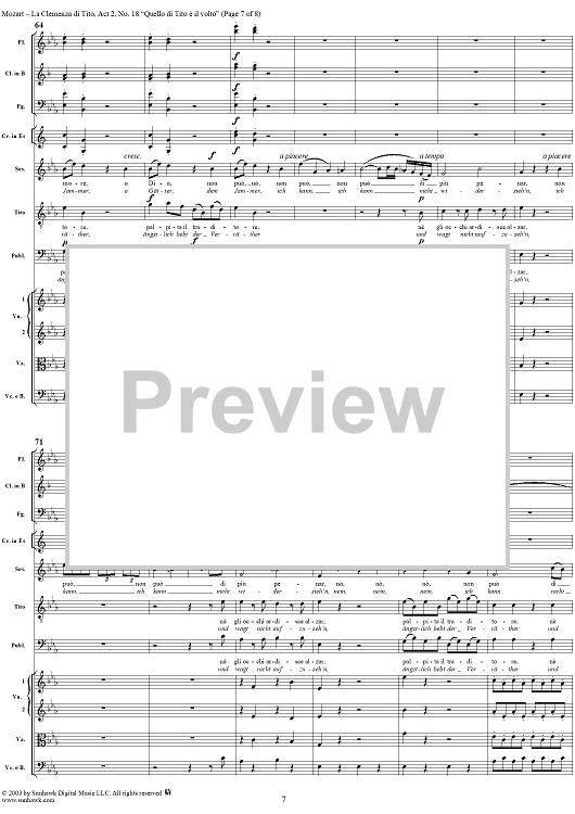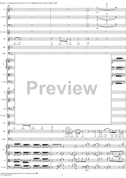 Digital Sheet Music for "Quello di Tito è il volto", No. 18 from "La Clemenza di Tito", Act 2 (K621) - Full Score by Wolfgang Amadeus Mozart scored for Voice and Orchestra; id:291613