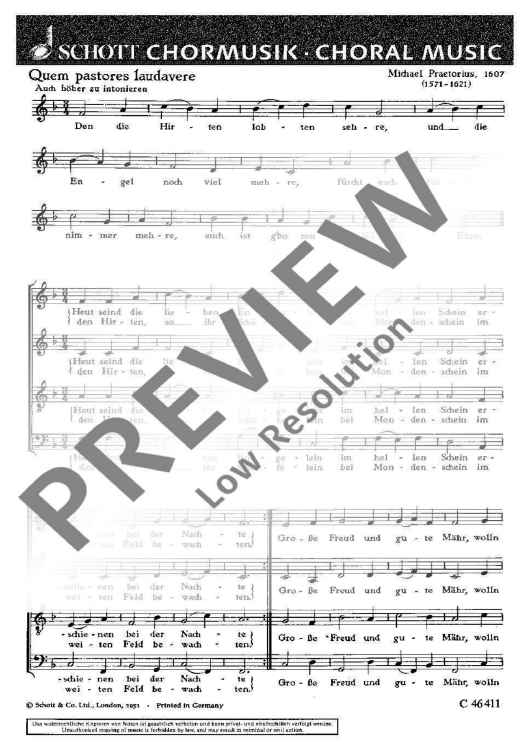 "Quem pastores laudavere - Choral Score" Sheet Music by Michael Praetorius