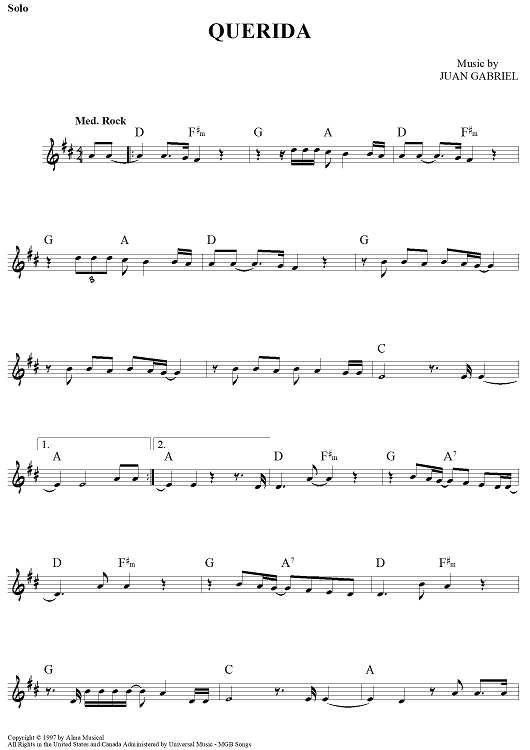 Digital Sheet Music for Querida by Juan Gabriel scored for Lead Sheet; id:456800