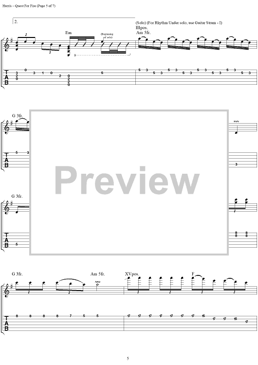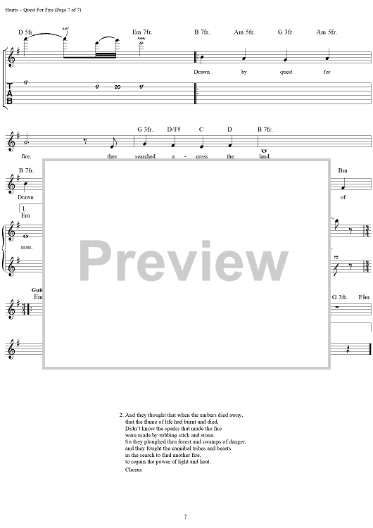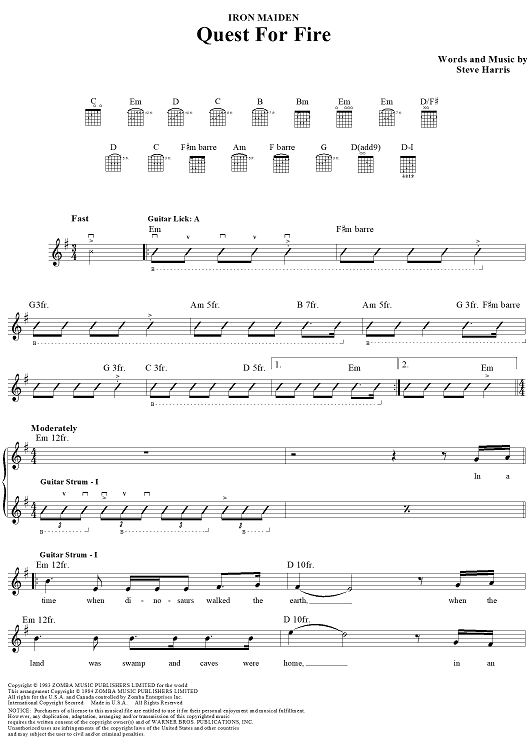 Digital Sheet Music for Quest For Fire by Steve Harris, Iron Maiden scored for Guitar Tab/Vocal; id:111925