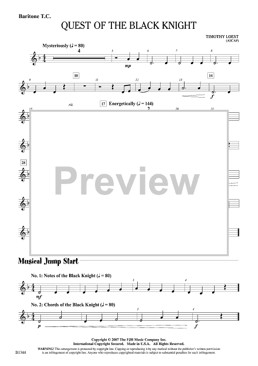 Digital Sheet Music for Quest of the Black Knight - Baritone TC by Timothy Loest scored for Beginning Band; id:501050