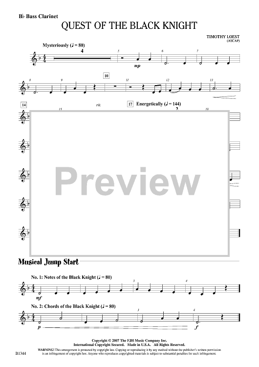 Digital Sheet Music for Quest of the Black Knight - Bb Bass Clarinet by Timothy Loest scored for Beginning Band; id:501042