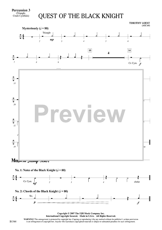 Digital Sheet Music for Quest of the Black Knight - Percussion 3 by Timothy Loest scored for Beginning Band; id:501057