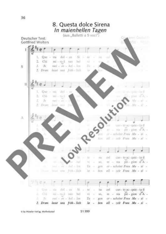 Digital Sheet Music for Questa dolce Sirena by Wilfried Fischer, Giovanni Giacomo Gastoldi, Hans Guenther Bastian scored for Mixed Choir (ssatb); id:490879
