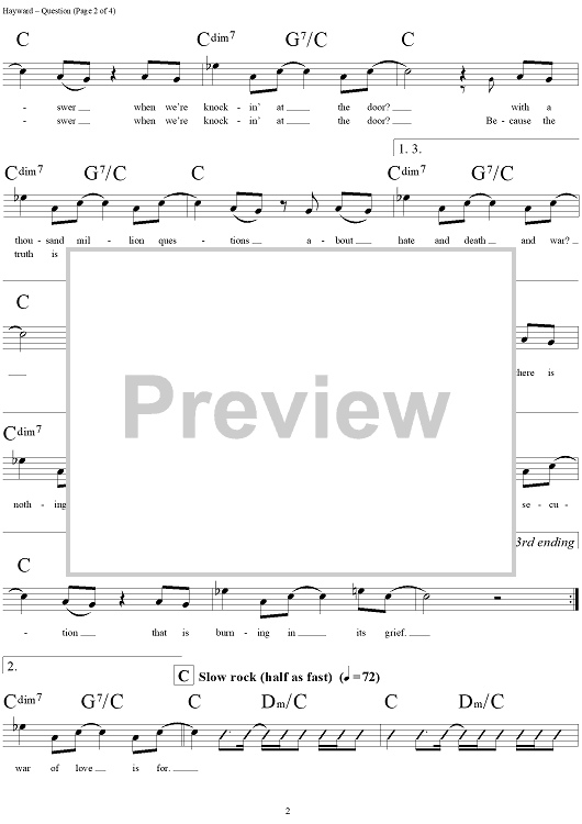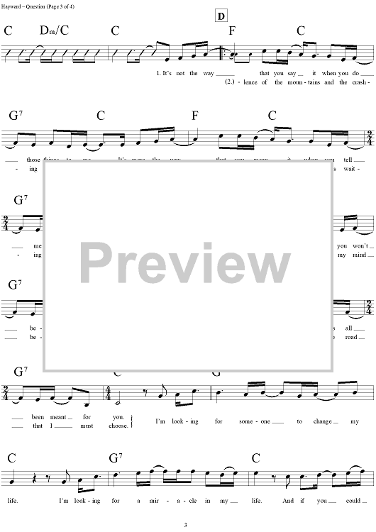 Digital Sheet Music for Question by Justin Hayward scored for Lead Sheet; id:294186