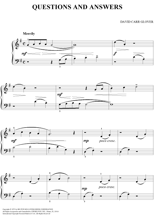 Digital Sheet Music for Questions and Answers by David Carr Glover scored for Piano Solo; id:449361