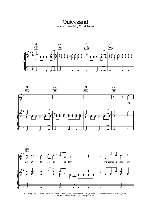 Digital Sheet Music for Quicksand by David Bowie scored for Piano/Vocal/Chords; id:401271