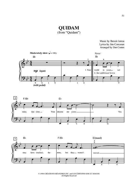 Digital Sheet Music for Quidam - from “Quidam” by Dan Coates, Jim Corcoran, Benoit Jutras scored for Easy Piano/Vocal/Chords; id:435304