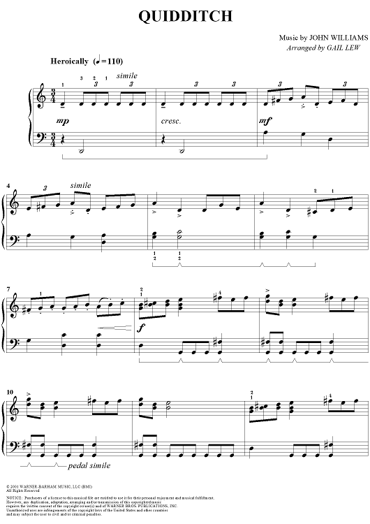 Digital Sheet Music for Quidditch by John Williams, Gail Lew scored for Easy Piano; id:284263
