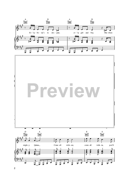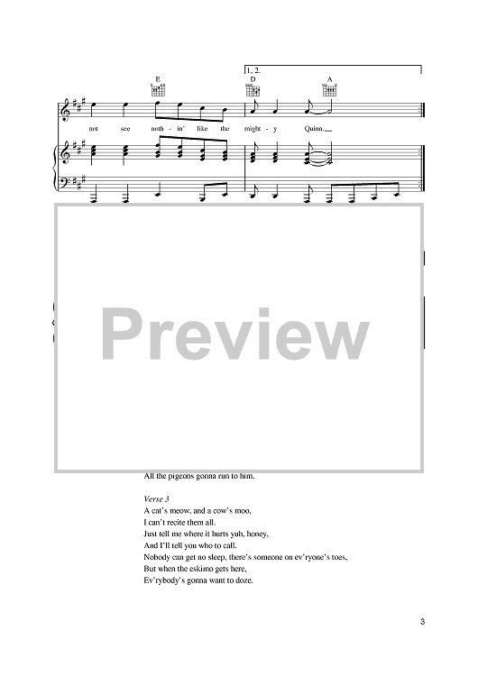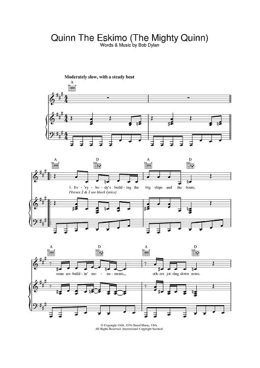 Digital Sheet Music for Quinn The Eskimo (The Mighty Quinn) by Bob Dylan scored for Piano/Vocal/Chords; id:389933