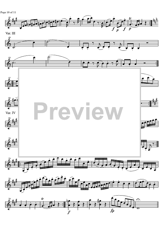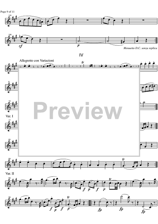 Digital Sheet Music for Quintet A Major KV581 - Violin 1 by Wolfgang Amadeus Mozart scored for 5 Clarinets; id:329240