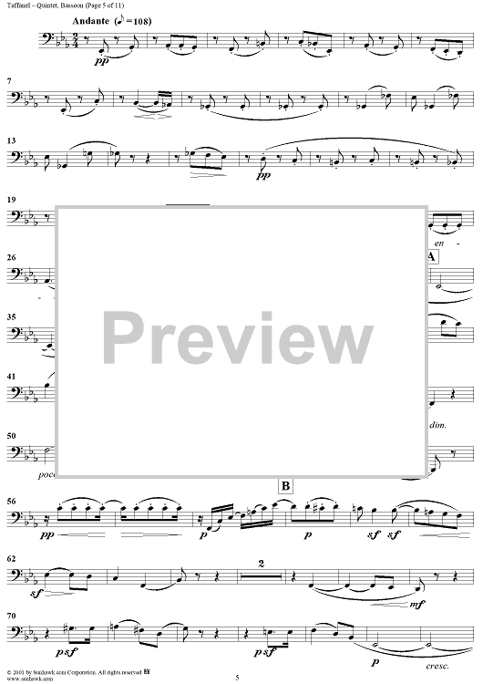 "Quintet - Bassoon" Sheet Music by Paul Taffanel