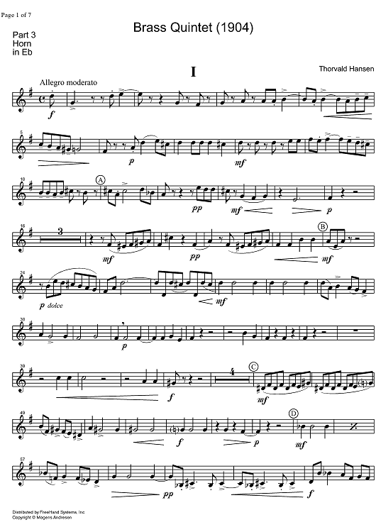 "Quintet - Horn in E-flat" Sheet Music by Thorvald Hansen