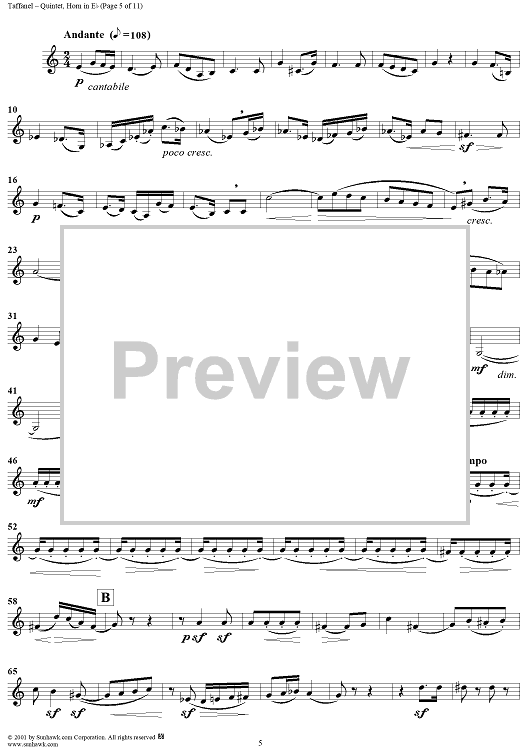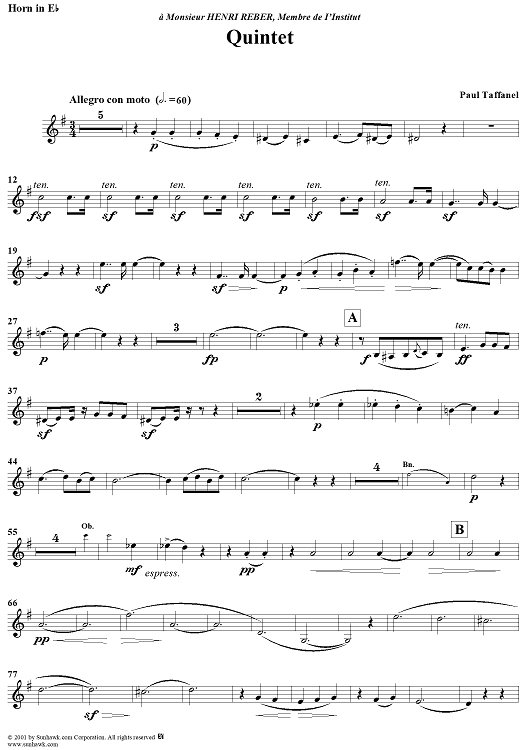 "Quintet - Horn" Sheet Music by Paul Taffanel