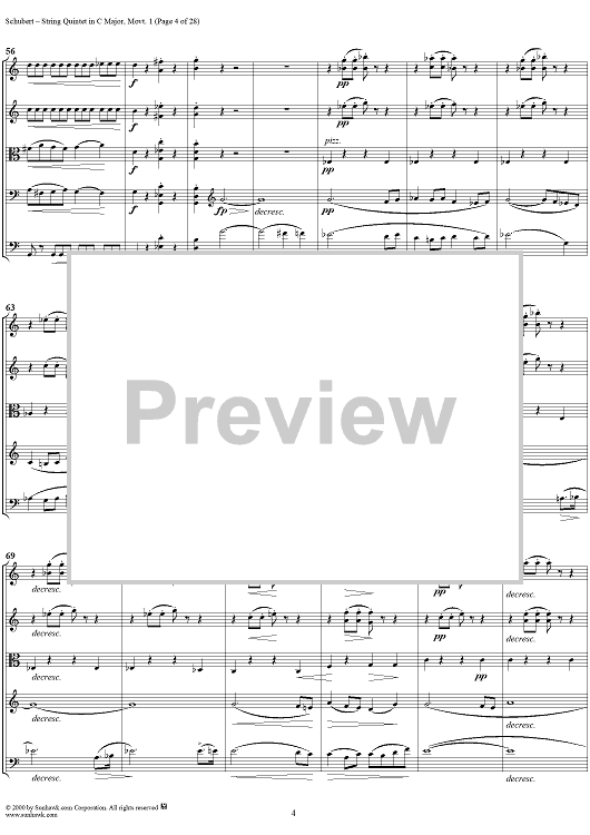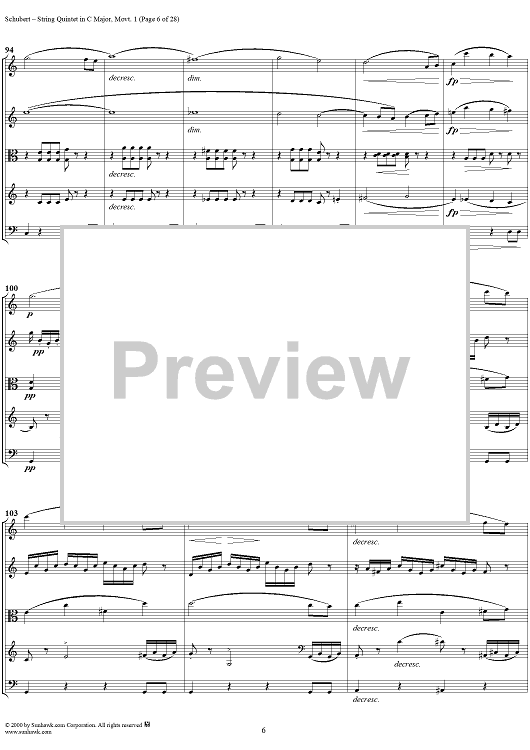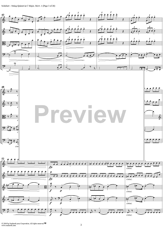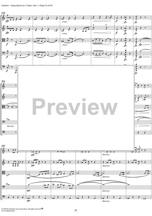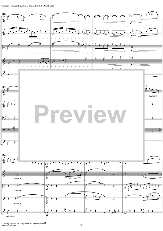 Digital Sheet Music for Quintet in C Major, Movement 1 - Score by Franz Schubert scored for String Quintet; id:241395
