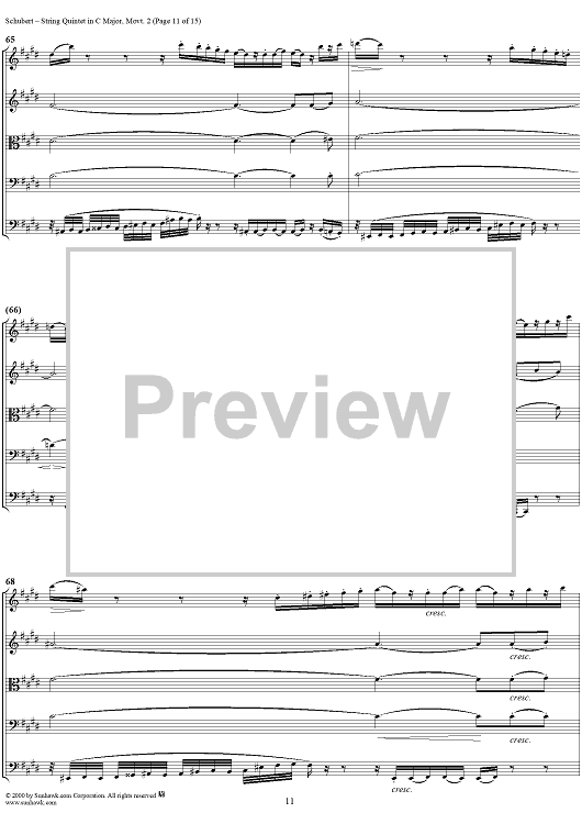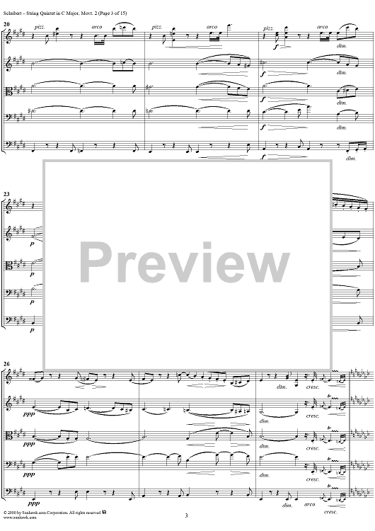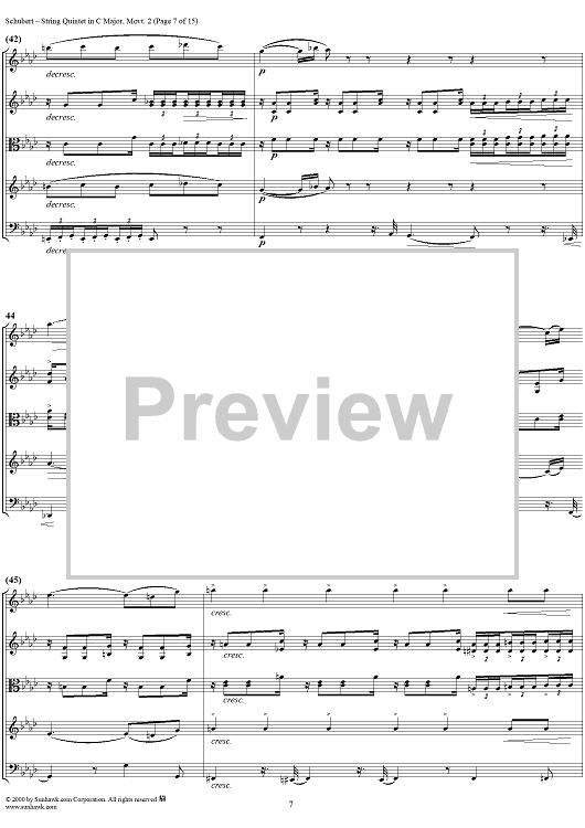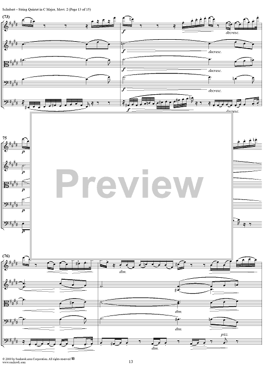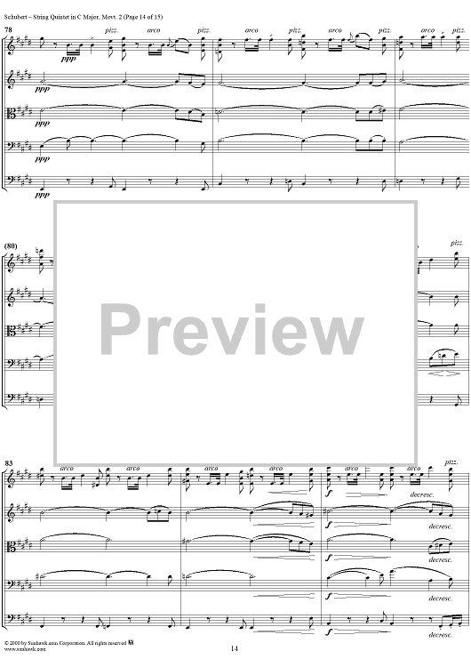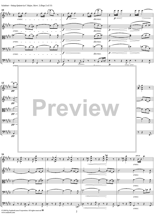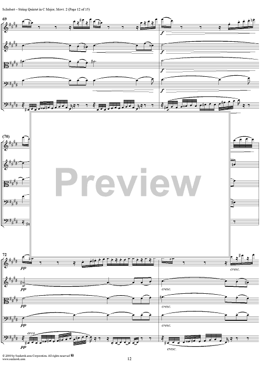 Digital Sheet Music for Quintet in C Major, Movement 2 - Score by Franz Schubert scored for String Quintet; id:165103