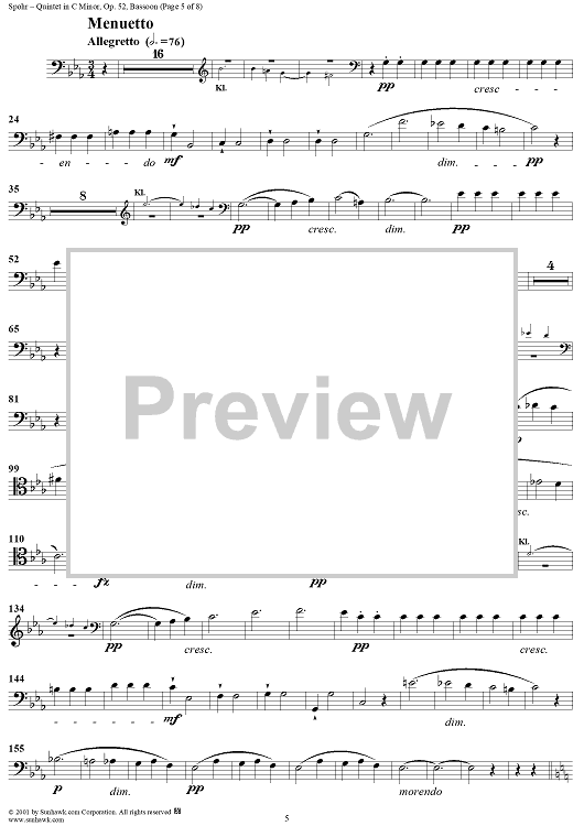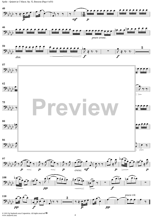 Digital Sheet Music for Quintet in C Minor - Bassoon by Louis Ludwig Spohr scored for Flute/Clarinet/Horn/Bassoon/Piano; id:258861