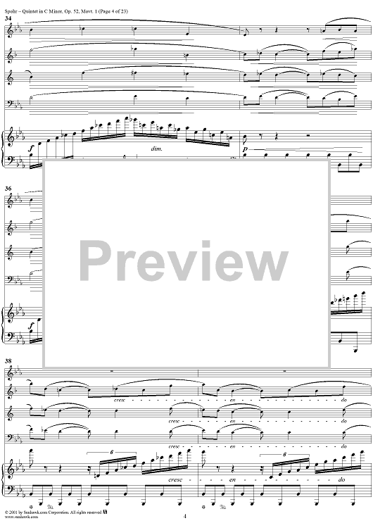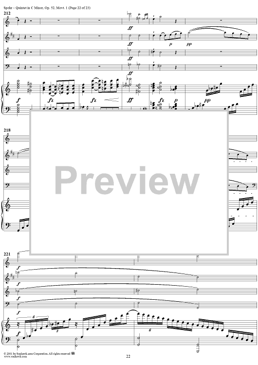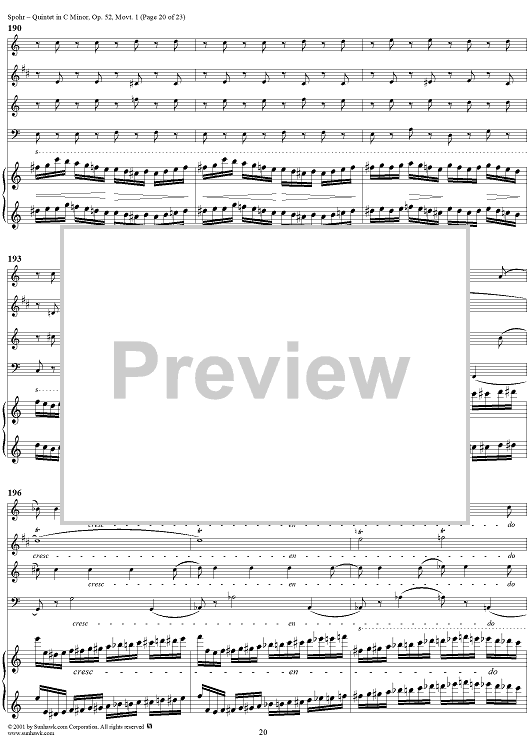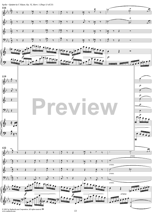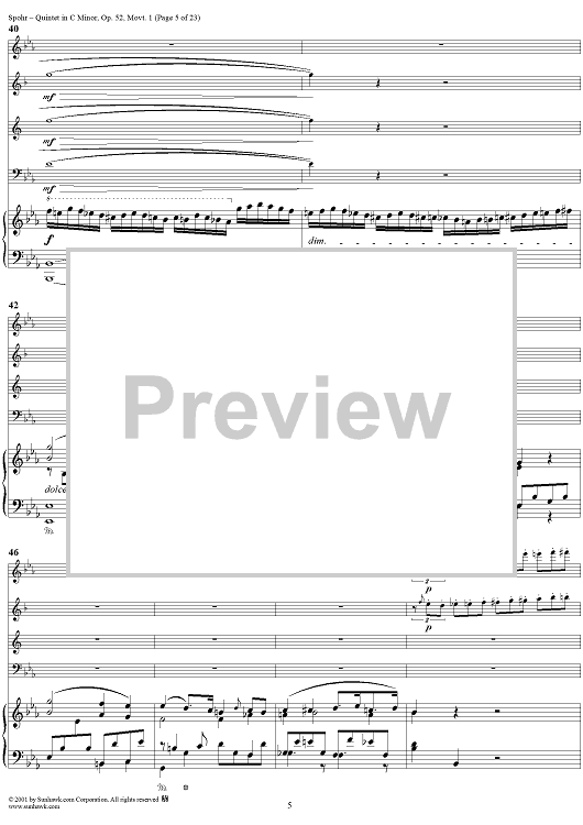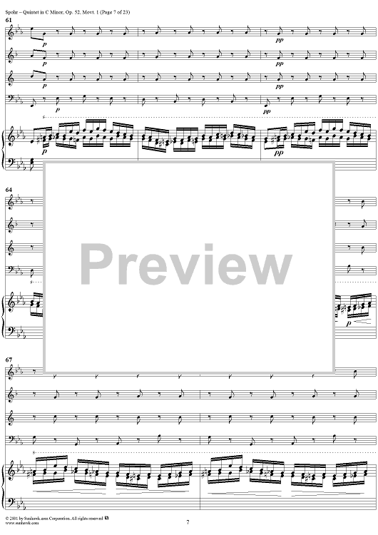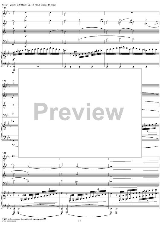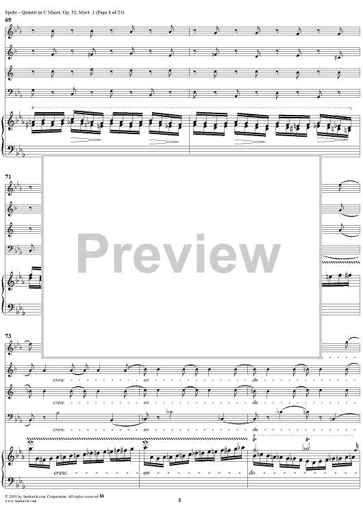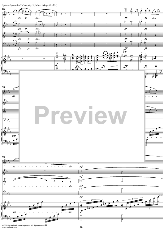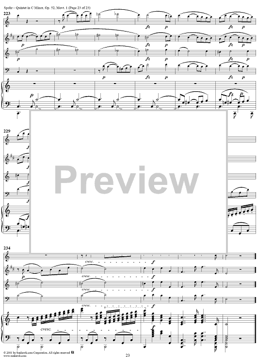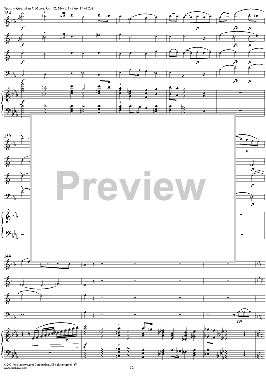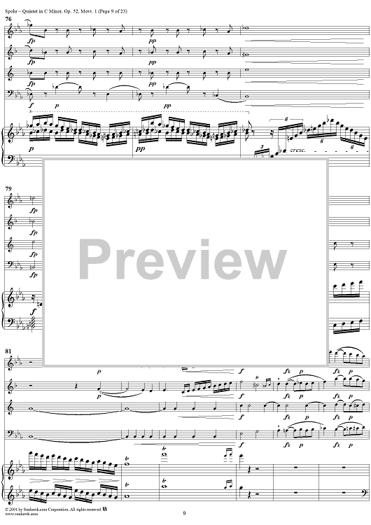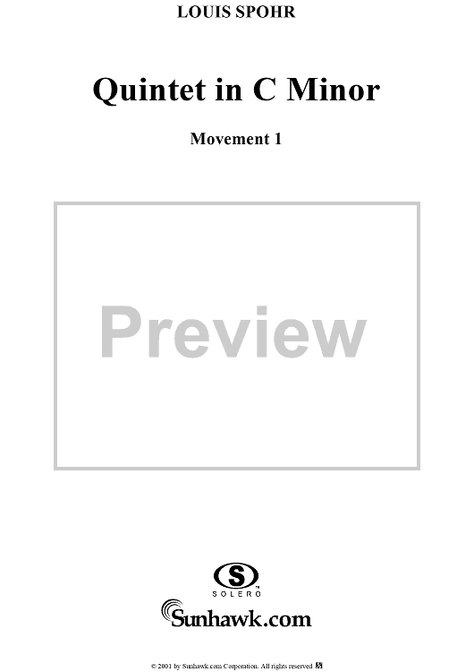 "Quintet in C Minor, Movement 1 - Piano Score" Sheet Music by Louis Ludwig Spohr