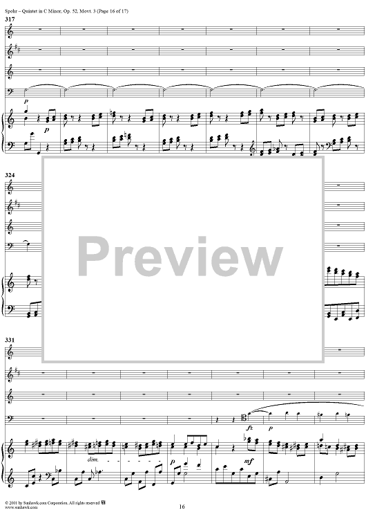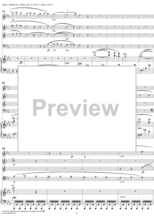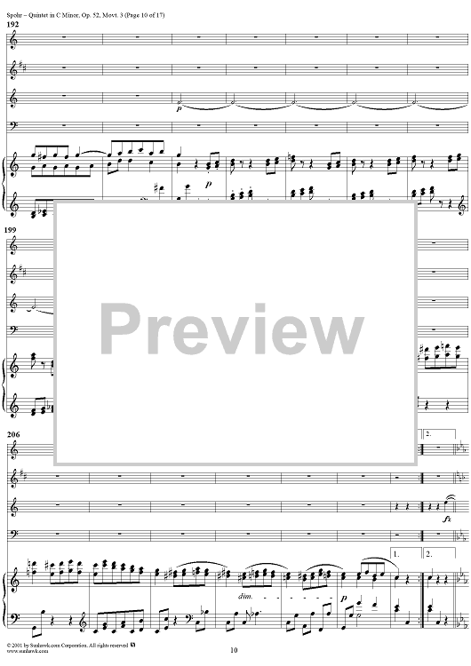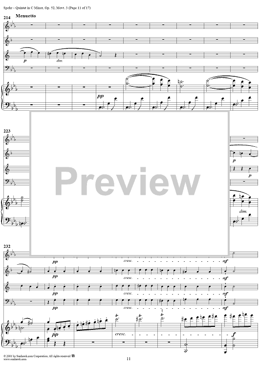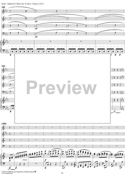 "Quintet in C Minor, Movement 3 - Piano Score" Sheet Music by Louis Ludwig Spohr