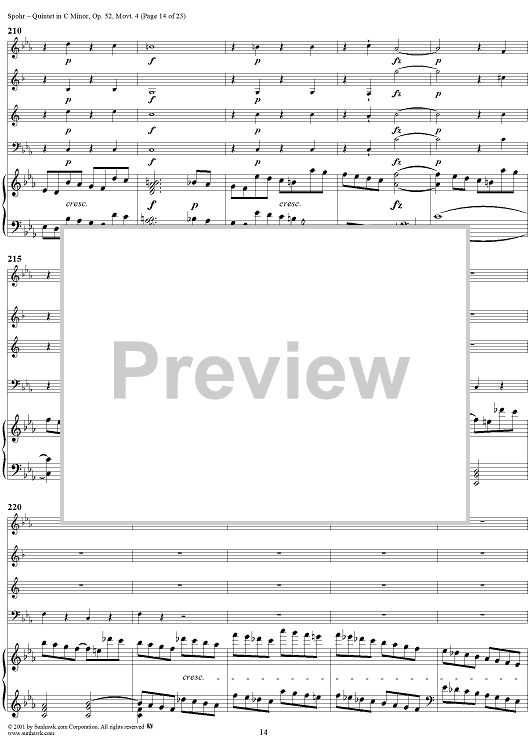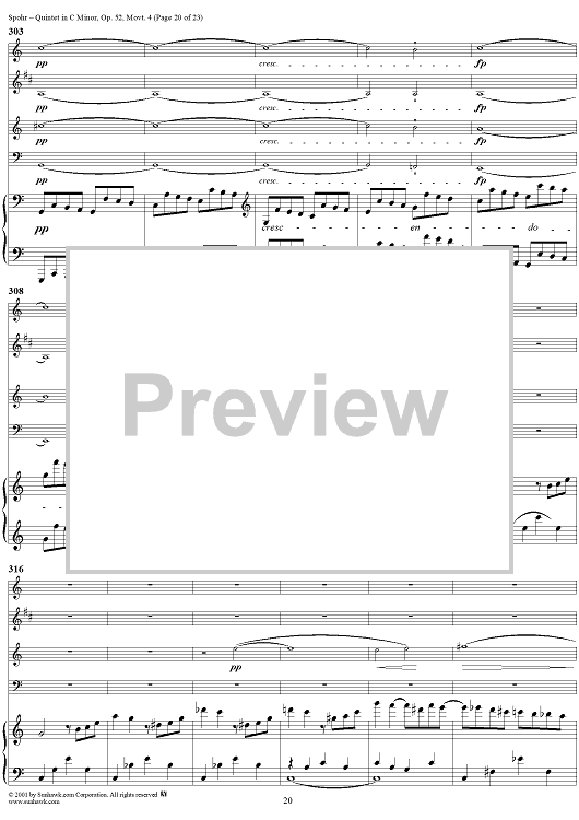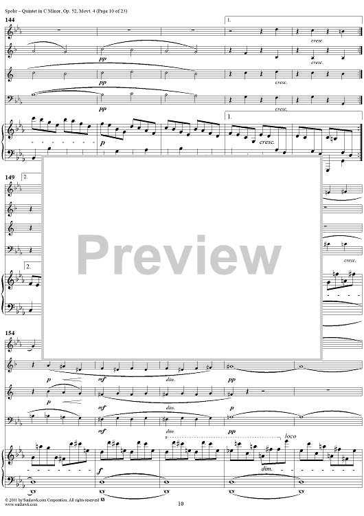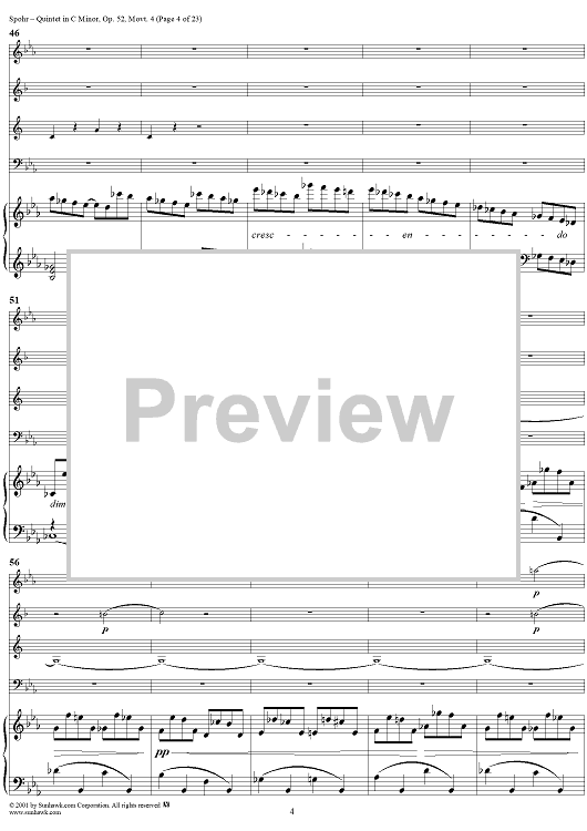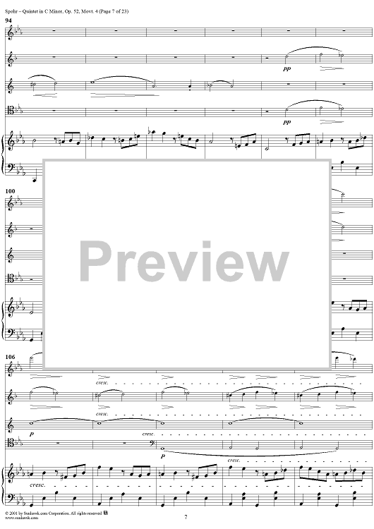 "Quintet in C Minor, Movement 4 - Piano Score" Sheet Music by Louis Ludwig Spohr