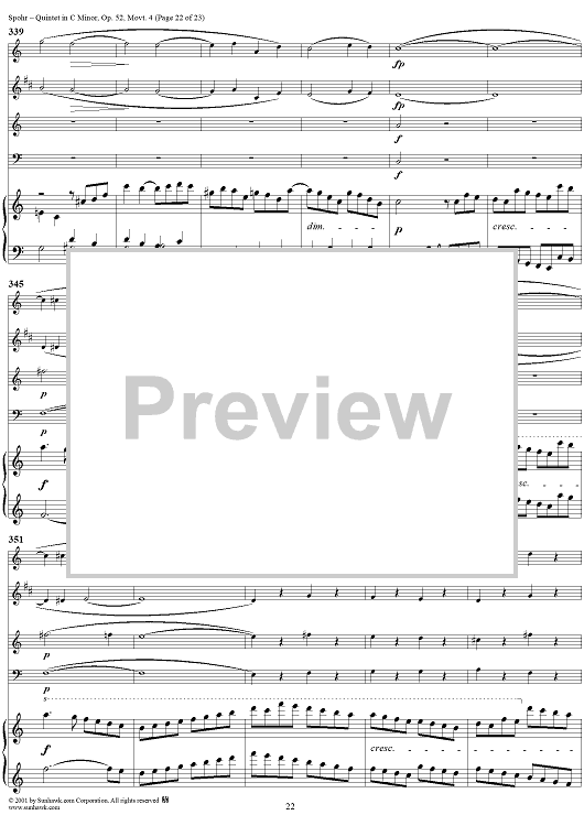 Digital Sheet Music for Quintet in C Minor, Movement 4 - Piano Score by Louis Ludwig Spohr scored for Flute/Clarinet/Horn/Bassoon/Piano; id:258593