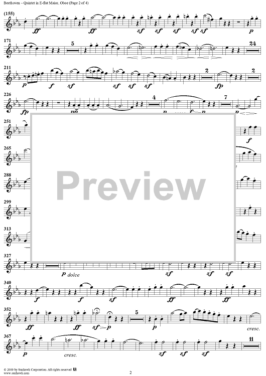 "Quintet in E-flat Major, Op. 16 - Oboe" Sheet Music by Ludwig van Beethoven