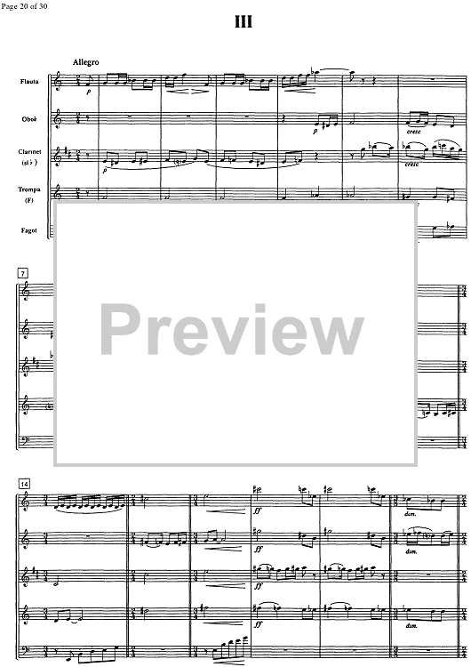 Digital Sheet Music for Quintet in F - Score by , Lluís Benejam scored for Wind Quintet; id:343211