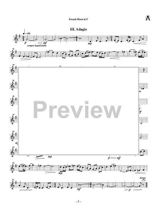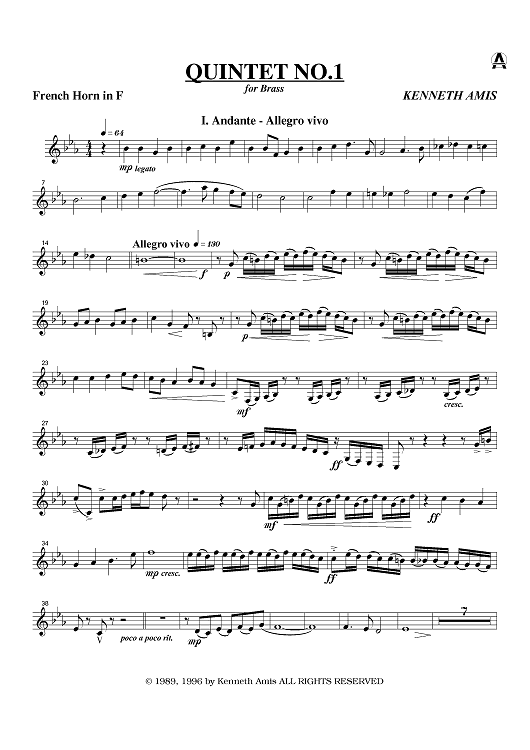 "Quintet No. 1 - Horn" Sheet Music by Kenneth Amis