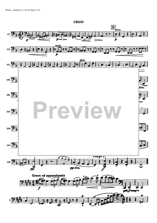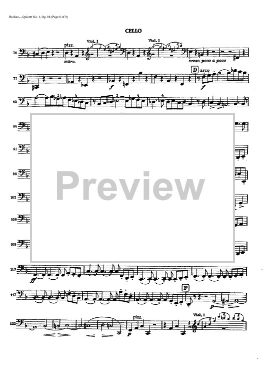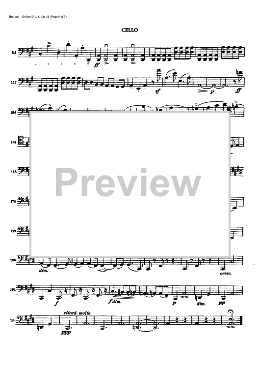 "Quintet No. 1 - Op. 88 - Cello" Sheet Music by Johannes Brahms