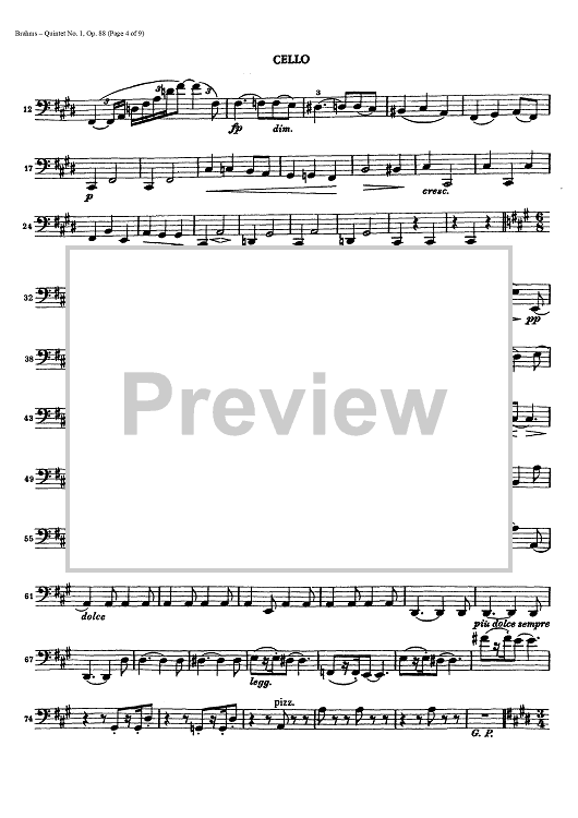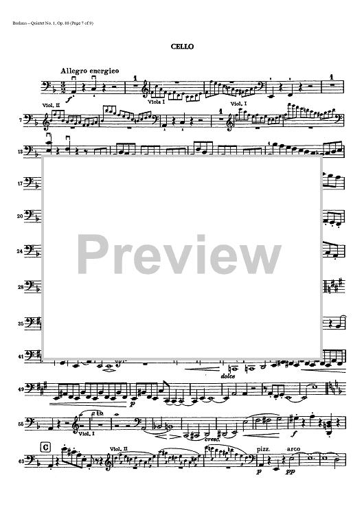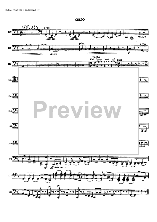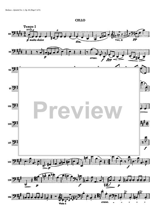 Digital Sheet Music for Quintet No. 1 - Op. 88 - Cello by , Johannes Brahms scored for String Quintet; id:437946