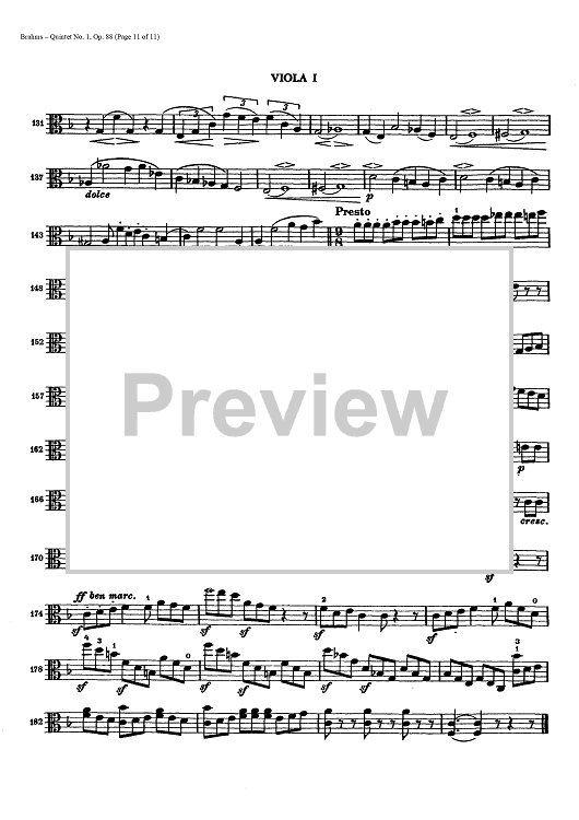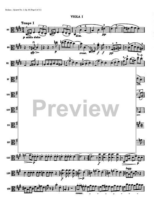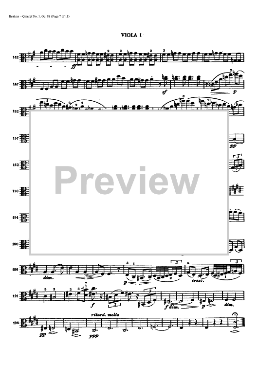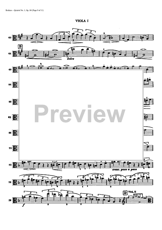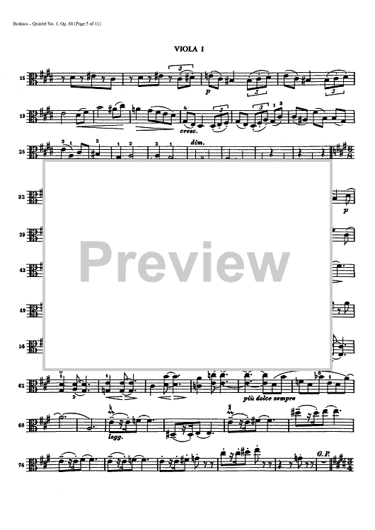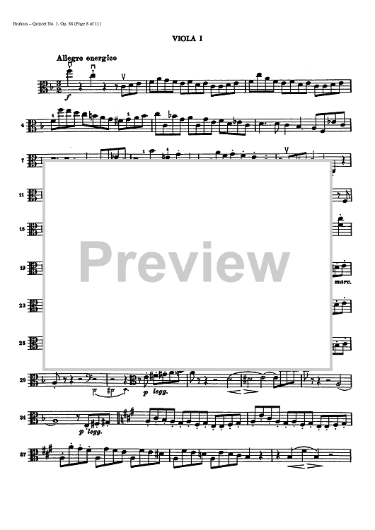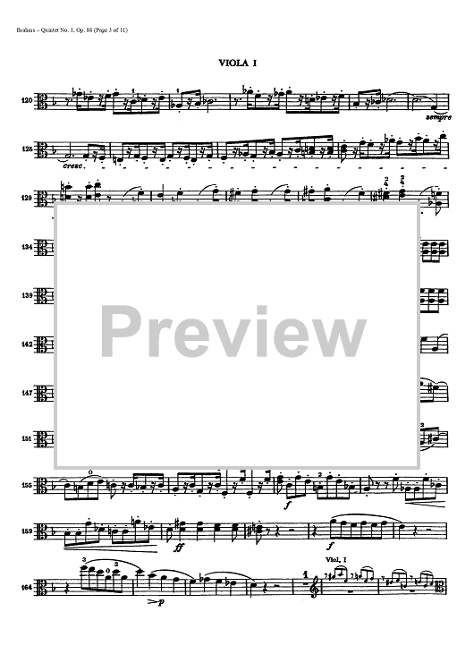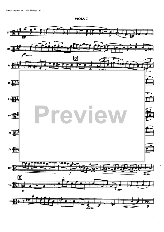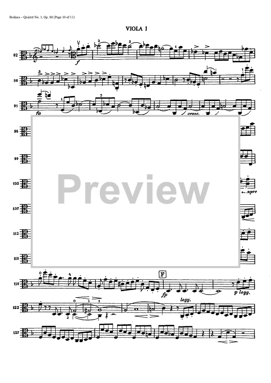 Digital Sheet Music for Quintet No. 1 - Op. 88 - Viola 1 by , Johannes Brahms scored for String Quintet; id:437944