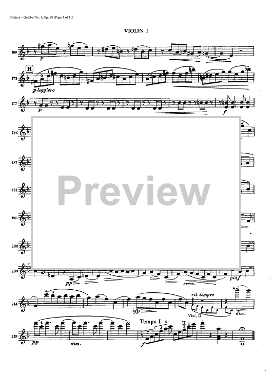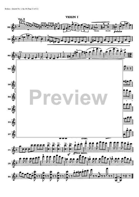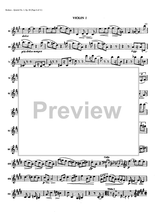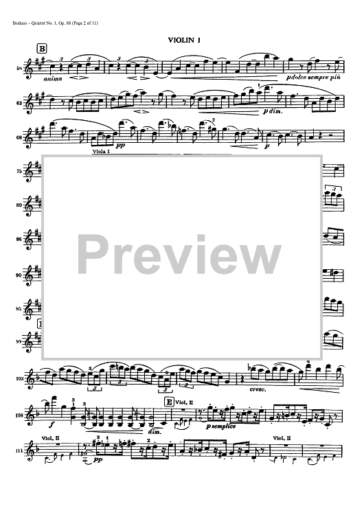 Digital Sheet Music for Quintet No. 1 - Op. 88 - Violin 1 by , Johannes Brahms scored for String Quintet; id:437942