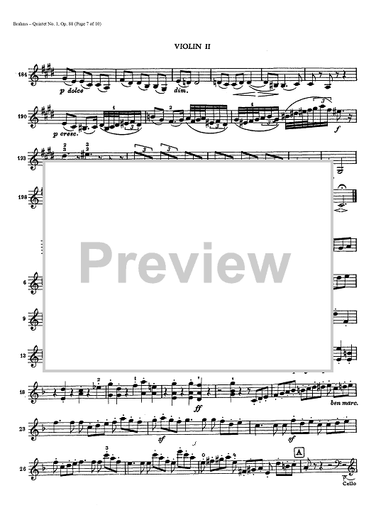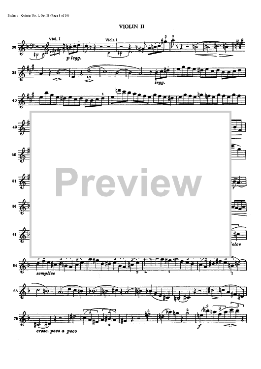 Digital Sheet Music for Quintet No. 1 - Op. 88 - Violin 2 by , Johannes Brahms scored for String Quintet; id:437943