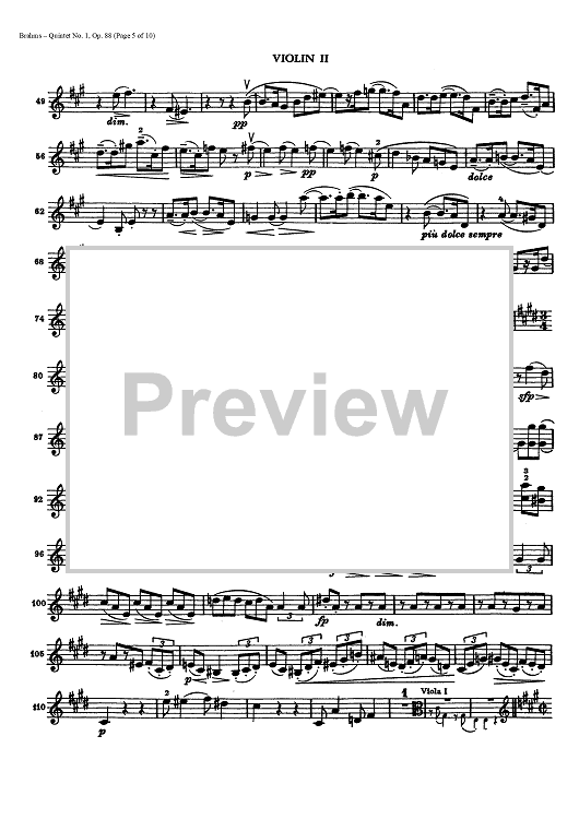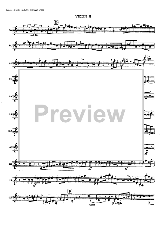 "Quintet No. 1 - Op. 88 - Violin 2" Sheet Music by Johannes Brahms