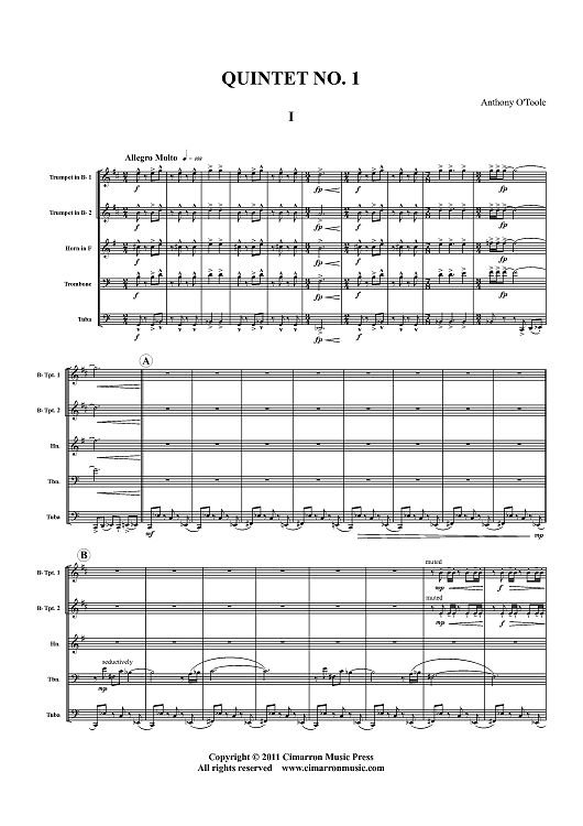 Digital Sheet Music for Quintet No. 1 - Score by Anthony O'Toole scored for Brass Quintet; id:425062