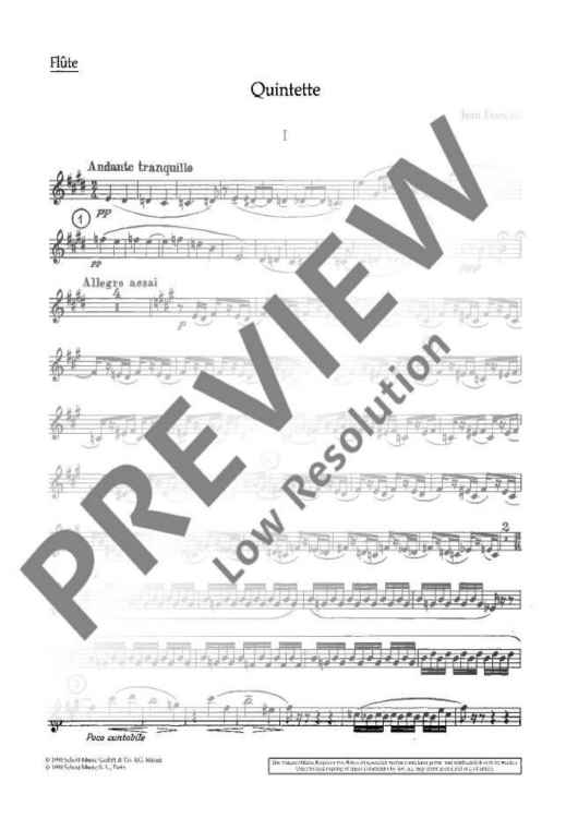 "Quintet No. 1 - Set of Parts" Sheet Music by Jean Françaix