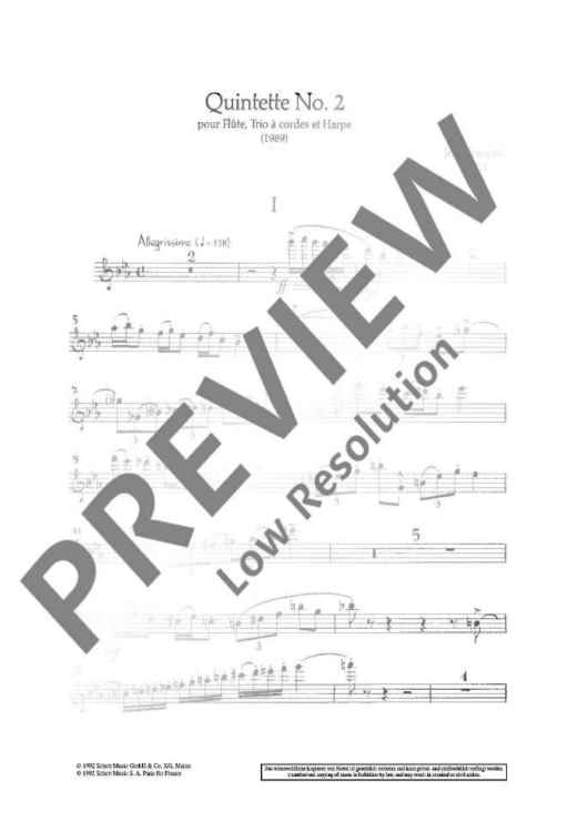 Digital Sheet Music for Quintet No. 2 - Set of Parts by Jean Françaix scored for Flute, Violin, Viola, Cello And Harp; id:486300