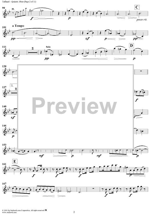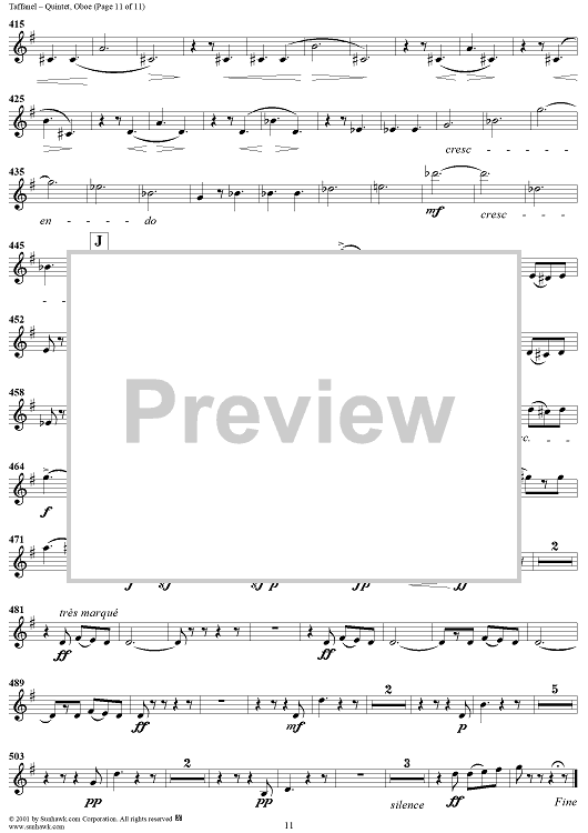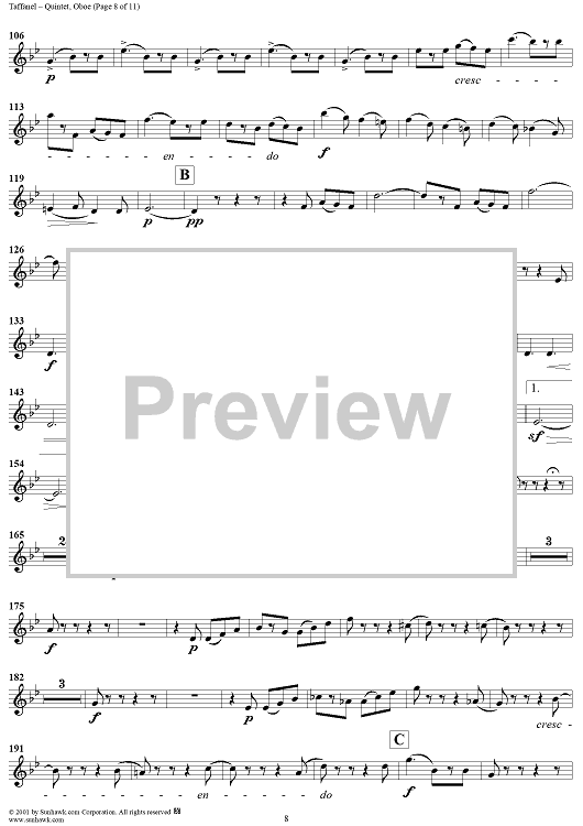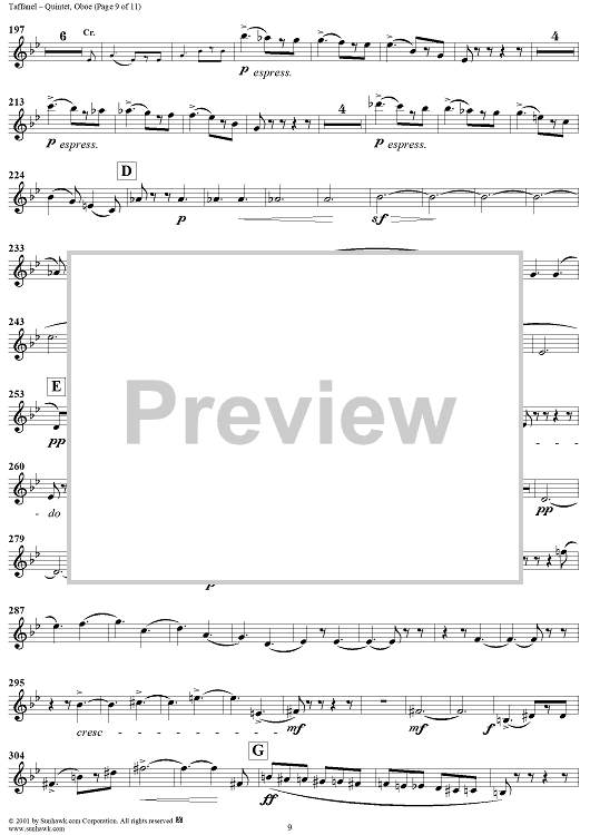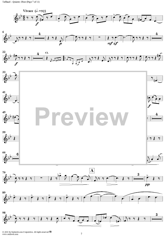 "Quintet - Oboe" Sheet Music by Paul Taffanel
