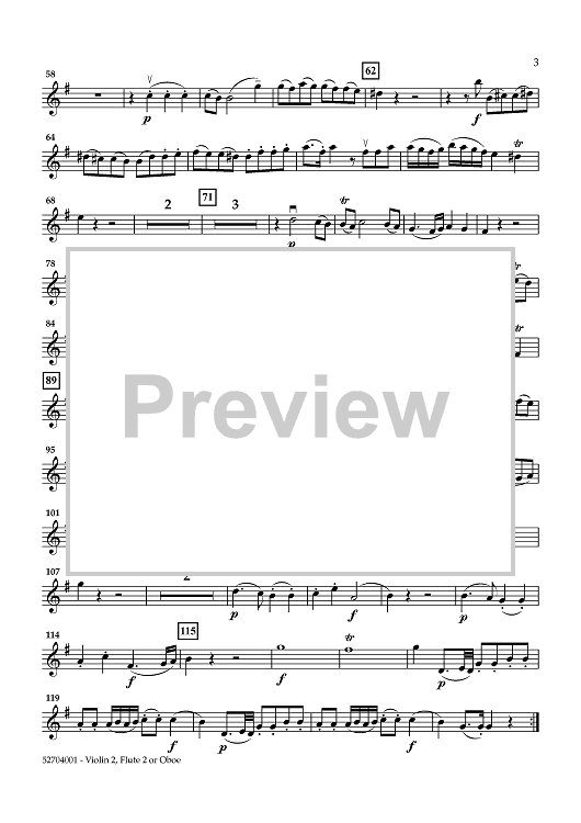 "Quintet Op. 11, No. 2 in G Major (W.B. 71) - Violin 2, Flute 2, or Oboe" Sheet Music by Johann Christian Bach