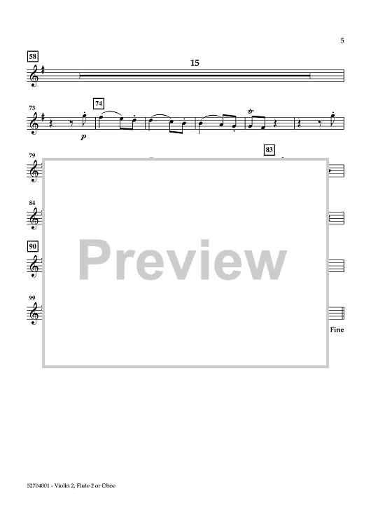 Digital Sheet Music for Quintet Op. 11, No. 2 in G Major (W.B. 71) - Violin 2, Flute 2, or Oboe by Johann Christian Bach, Lynne Latham scored for String Quintet; id:462589