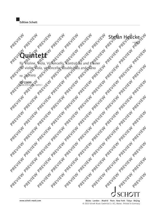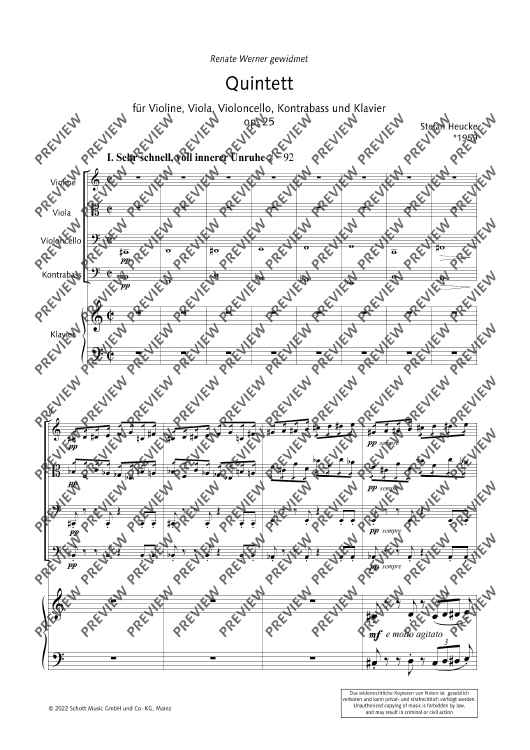 Digital Sheet Music for Quintet by Stefan Heucke scored for Violin, Viola, Cello, Double Bass And Piano; id:498653